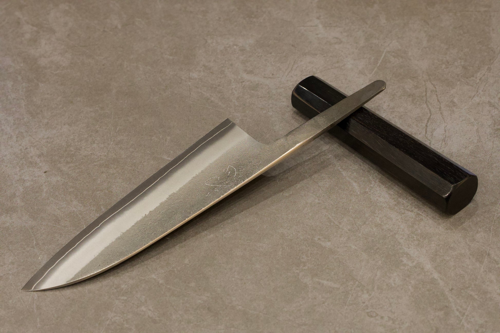 Regarding the daily maintenance of Japanese kitchen knives:1、The forging technique of Japanese kitchen knives has evolved from traditional Japanese swords, giving them superior sharpness and hardness, making them excellent for cutting and slicing tasks. Most food ingredients commonly purchased in Japan, such as fish, chicken, beef, and pork, are often already processed into boneless or meat-only forms. Consequently, the need for chopping and cleaving is rare in most Japanese culinary scenarios. Therefore, Japanese kitchen knives are not designed for heavy chopping, and it is advisable not to attempt to cut or chop frozen foods and bones, as it may lead to blade damage.2、If your kitchen knife is made from carbon steel, it is essential to wash the knife after use and thoroughly dry it to prevent moisture retention. This is especially important as carbon steel blades are prone to rust if not properly maintained. From a hygiene standpoint, it is also recommended to keep stainless steel knives clean. If you plan to store your knife for an extended period without use, we suggest applying a layer of knife oil (olive oil is also suitable) and wrapping the blade with rust-resistant paper (newspaper is acceptable).