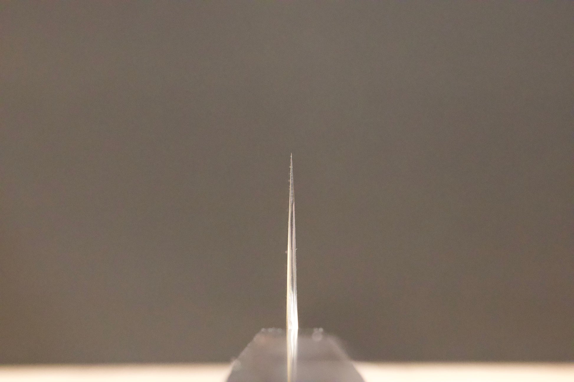 4.想要尽可能地提高日本厨刀(特别是传统的片刃/单刃厨刀)的锋利度,十分建议您使用日本的磨刀石对刀刃进行研磨。日本厨刀所使用的钢材(特别是碳素钢)多数是由日本专门的钢材厂为厨刀而研发、制造的刃物钢,通过砥石的研磨后,可以获得更为良好的切割感。这种效果,在使用磨刀器、磨刀棒等方法的情况下,是会有所减退的。
