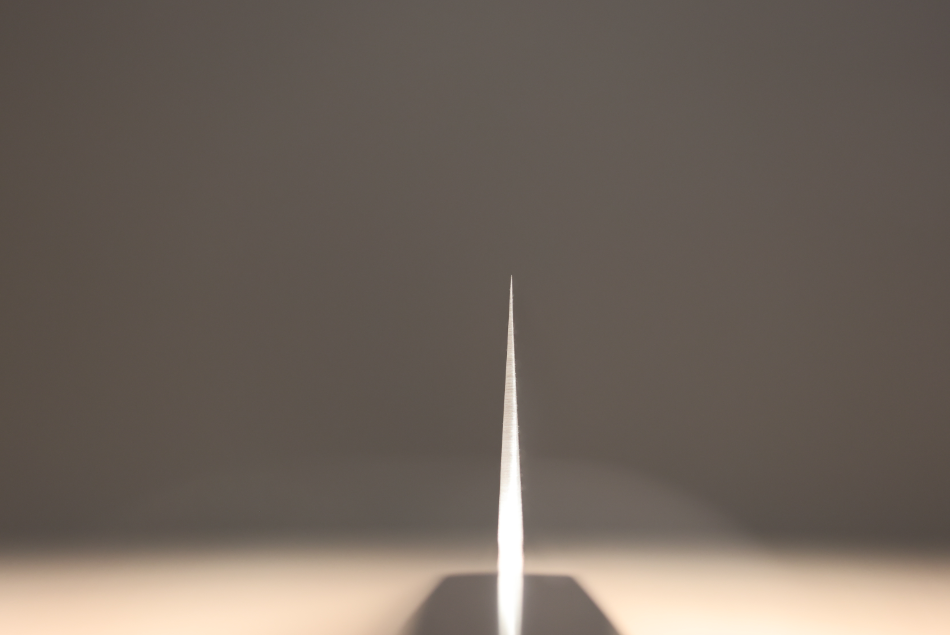 4.想要尽可能地提高日本厨刀(特别是传统的片刃/单刃厨刀)的锋利度,十分建议您使用日本的磨刀石对刀刃进行研磨。日本厨刀所使用的钢材(特别是碳素钢)多数是由日本专门的钢材厂为厨刀而研发、制造的刃物钢,通过砥石的研磨后,可以获得更为良好的切割感。这种效果,在使用磨刀器、磨刀棒等方法的情况下,是会有所减退的。