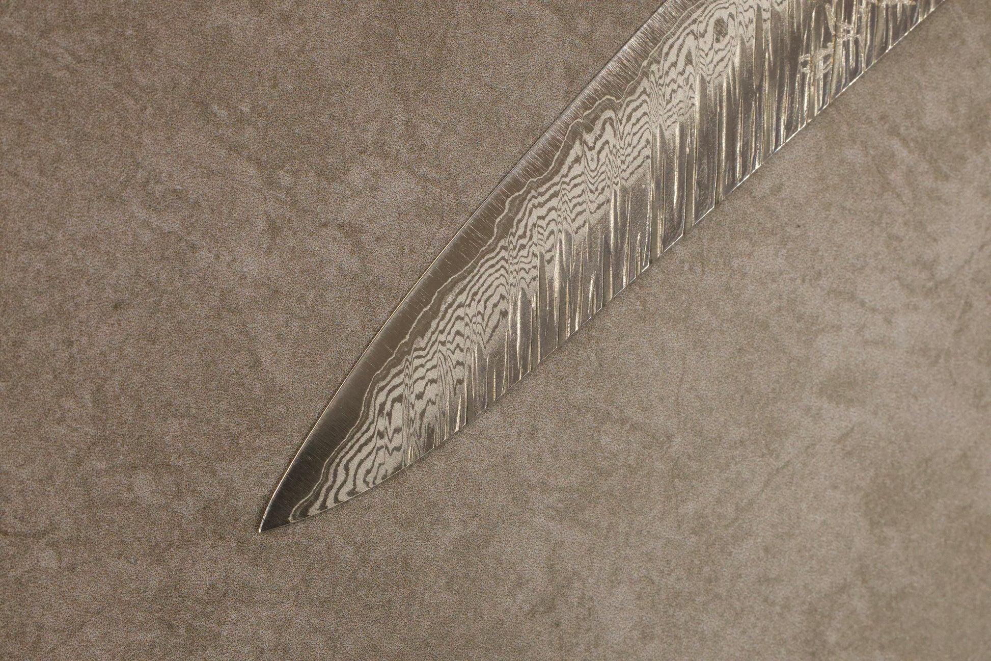 Regarding the daily maintenance of Japanese kitchen knives:1、The forging technique of Japanese kitchen knives has evolved from traditional Japanese swords, giving them superior sharpness and hardness, making them excellent for cutting and slicing tasks. Most food ingredients commonly purchased in Japan, such as fish, chicken, beef, and pork, are often already processed into boneless or meat-only forms. Consequently, the need for chopping and cleaving is rare in most Japanese culinary scenarios. Therefore, Japanese kitchen knives are not designed for heavy chopping, and it is advisable not to attempt to cut or chop frozen foods and bones, as it may lead to blade damage.2、If your kitchen knife is made from carbon steel, it is essential to wash the knife after use and thoroughly dry it to prevent moisture retention. This is especially important as carbon steel blades are prone to rust if not properly maintained. From a hygiene standpoint, it is also recommended to keep stainless steel knives clean. If you plan to store your knife for an extended period without use, we suggest applying a layer of knife oil (olive oil is also suitable) and wrapping the blade with rust-resistant paper (newspaper is acceptable).