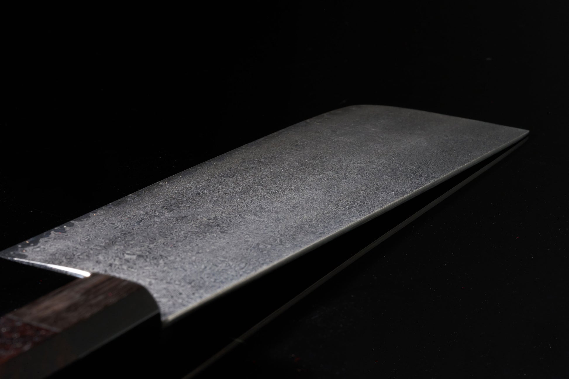 Regarding the daily maintenance of Japanese kitchen knives:1、The forging technique of Japanese kitchen knives has evolved from traditional Japanese swords, giving them superior sharpness and hardness, making them excellent for cutting and slicing tasks. Most food ingredients commonly purchased in Japan, such as fish, chicken, beef, and pork, are often already processed into boneless or meat-only forms. Consequently, the need for chopping and cleaving is rare in most Japanese culinary scenarios. Therefore, Japanese kitchen knives are not designed for heavy chopping, and it is advisable not to attempt to cut or chop frozen foods and bones, as it may lead to blade damage.2、If your kitchen knife is made from carbon steel, it is essential to wash the knife after use and thoroughly dry it to prevent moisture retention. This is especially important as carbon steel blades are prone to rust if not properly maintained. From a hygiene standpoint, it is also recommended to keep stainless steel knives clean. If you plan to store your knife for an extended period without use, we suggest applying a layer of knife oil (olive oil is also suitable) and wrapping the blade with rust-resistant paper (newspaper is acceptable).
