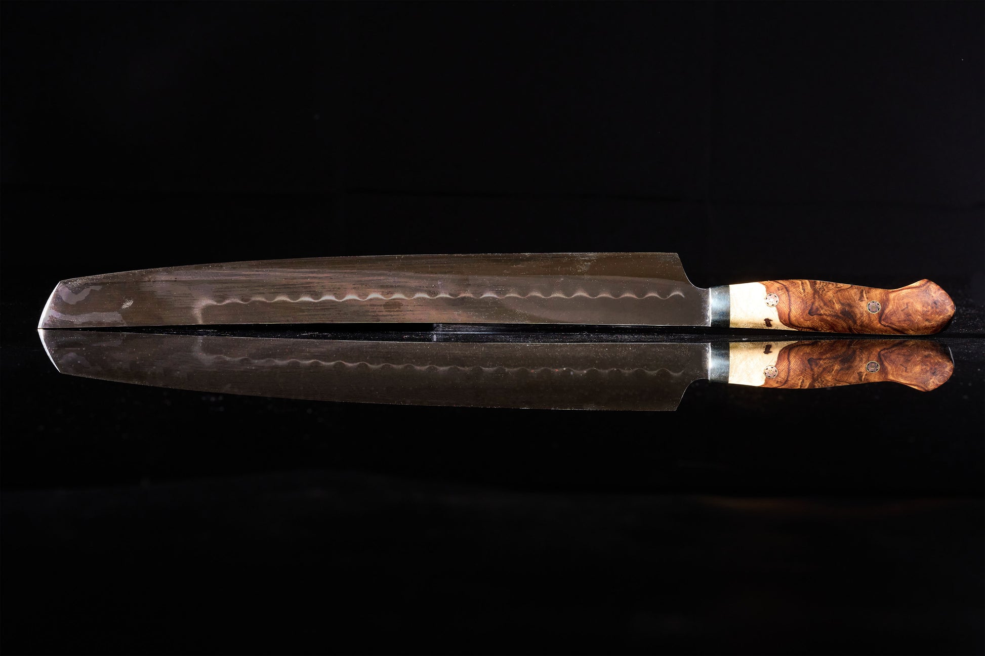 Japanese Sakimaru Sujihiki Slicer knife - Honyaki Mirrored - Yoshikazu Ikeda - Shirogami3 White Steel No.3 Size: 33cm/12.9inch