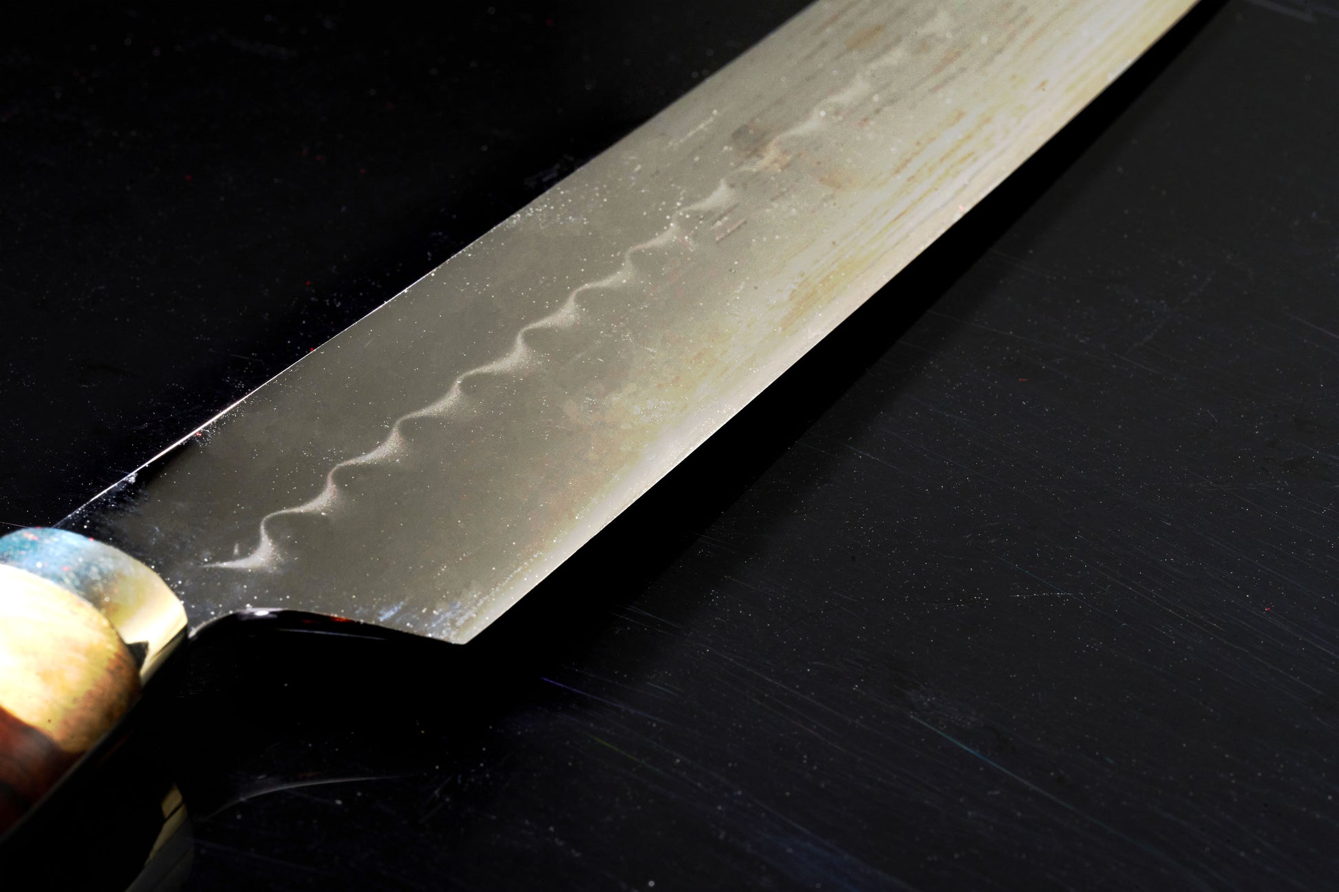 日本切片刀 先丸筋引 池田美和白本烧 两镜面两波浮 白三钢33cm