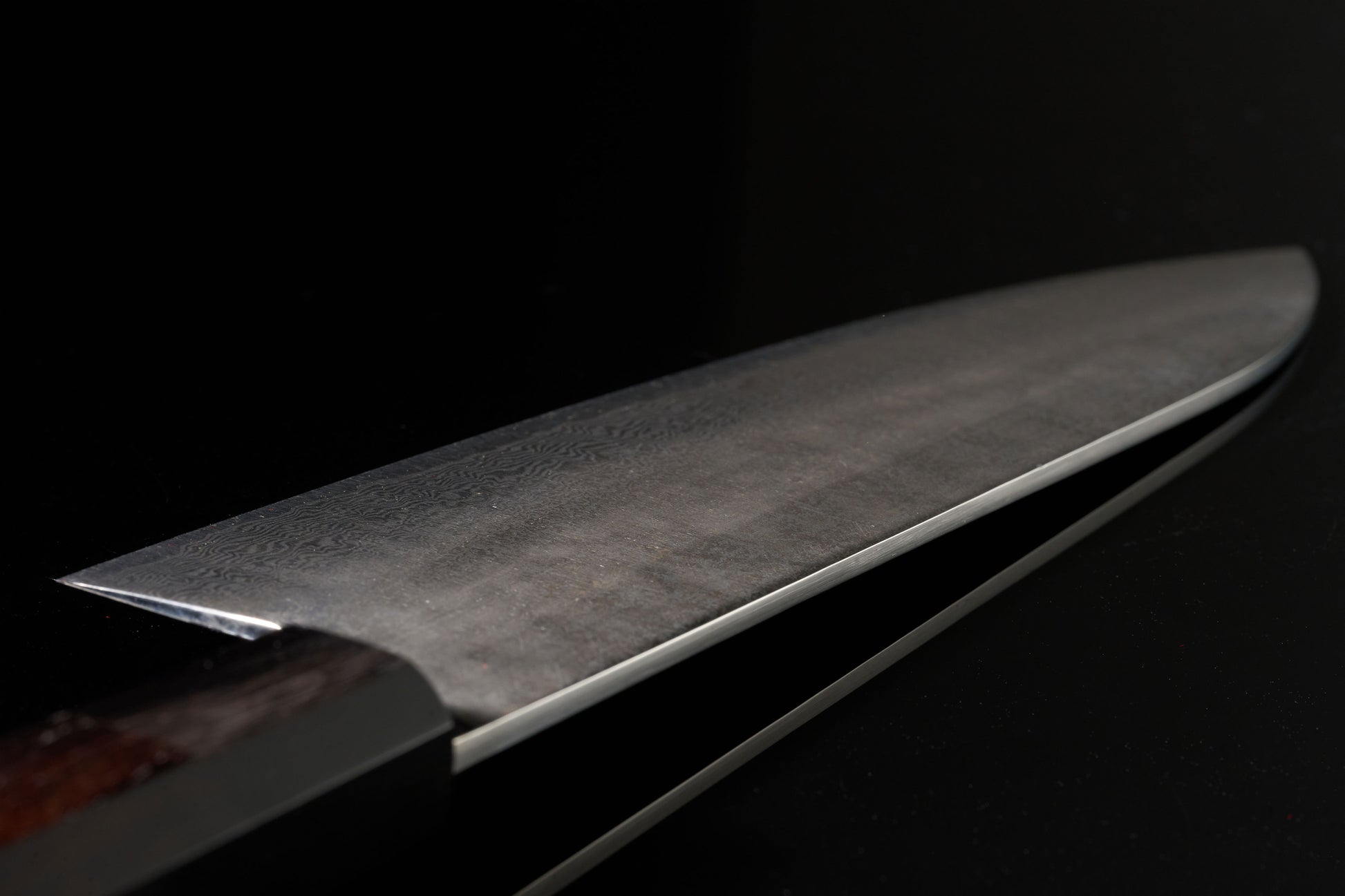 Regarding the daily maintenance of Japanese kitchen knives:1、The forging technique of Japanese kitchen knives has evolved from traditional Japanese swords, giving them superior sharpness and hardness, making them excellent for cutting and slicing tasks. Most food ingredients commonly purchased in Japan, such as fish, chicken, beef, and pork, are often already processed into boneless or meat-only forms. Consequently, the need for chopping and cleaving is rare in most Japanese culinary scenarios. Therefore, Japanese kitchen knives are not designed for heavy chopping, and it is advisable not to attempt to cut or chop frozen foods and bones, as it may lead to blade damage.2、If your kitchen knife is made from carbon steel, it is essential to wash the knife after use and thoroughly dry it to prevent moisture retention. This is especially important as carbon steel blades are prone to rust if not properly maintained. From a hygiene standpoint, it is also recommended to keep stainless steel knives clean. If you plan to store your knife for an extended period without use, we suggest applying a layer of knife oil (olive oil is also suitable) and wrapping the blade with rust-resistant paper (newspaper is acceptable).