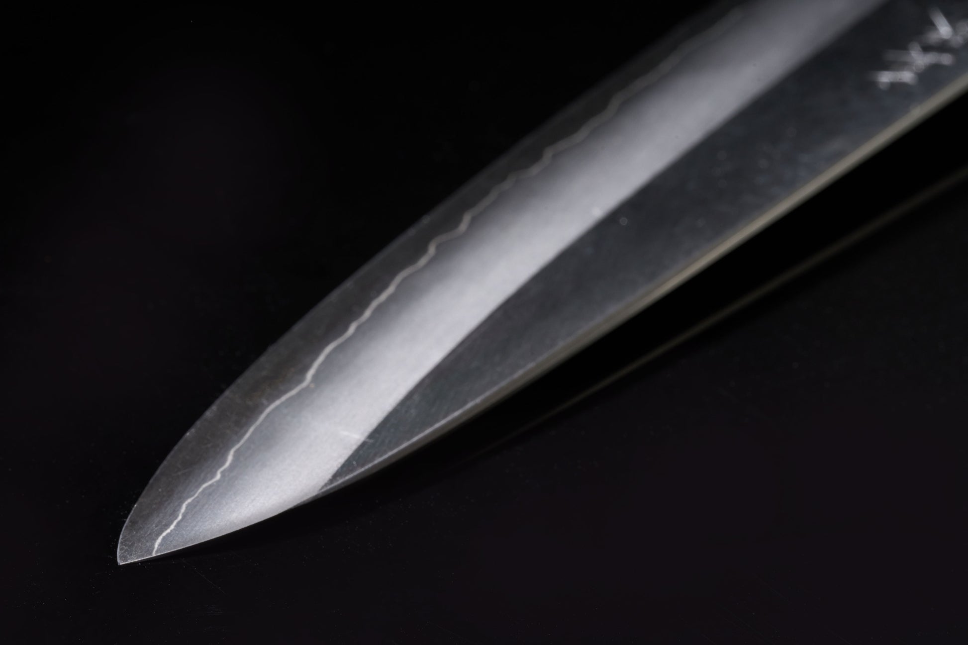 Regarding the daily maintenance of Japanese kitchen knives:1、The forging technique of Japanese kitchen knives has evolved from traditional Japanese swords, giving them superior sharpness and hardness, making them excellent for cutting and slicing tasks. Most food ingredients commonly purchased in Japan, such as fish, chicken, beef, and pork, are often already processed into boneless or meat-only forms. Consequently, the need for chopping and cleaving is rare in most Japanese culinary scenarios. Therefore, Japanese kitchen knives are not designed for heavy chopping, and it is advisable not to attempt to cut or chop frozen foods and bones, as it may lead to blade damage.2、If your kitchen knife is made from carbon steel, it is essential to wash the knife after use and thoroughly dry it to prevent moisture retention. This is especially important as carbon steel blades are prone to rust if not properly maintained. From a hygiene standpoint, it is also recommended to keep stainless steel knives clean. If you plan to store your knife for an extended period without use, we suggest applying a layer of knife oil (olive oil is also suitable) and wrapping the blade with rust-resistant paper (newspaper is acceptable).