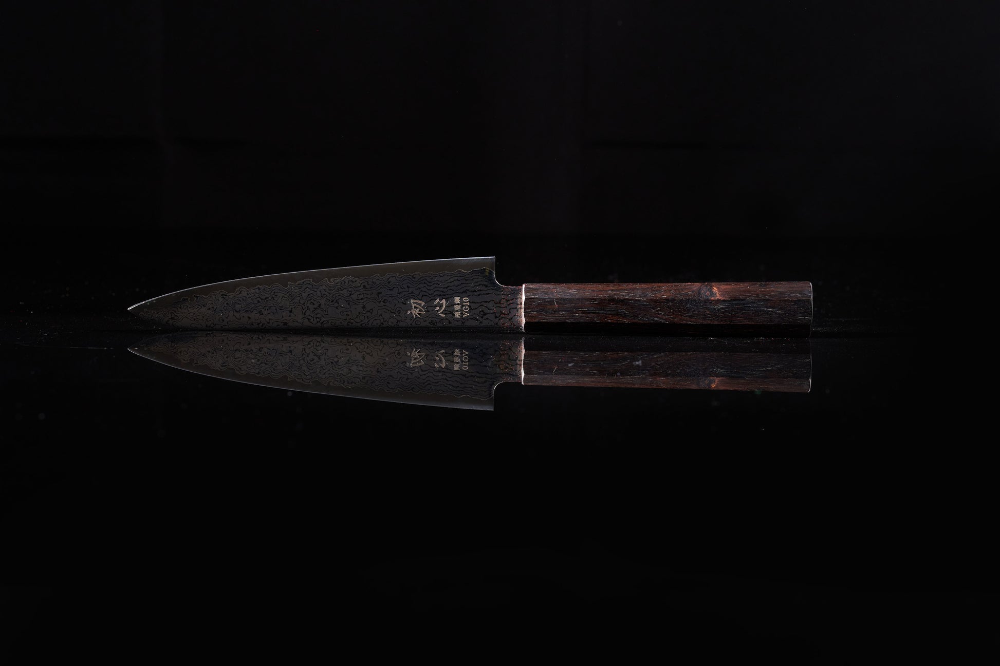 Japanese Petty-Utility knife – HATSUKOKORO - Sunaarashi - Black damascus - VG-10 Size: 15cm/ 5.9inch