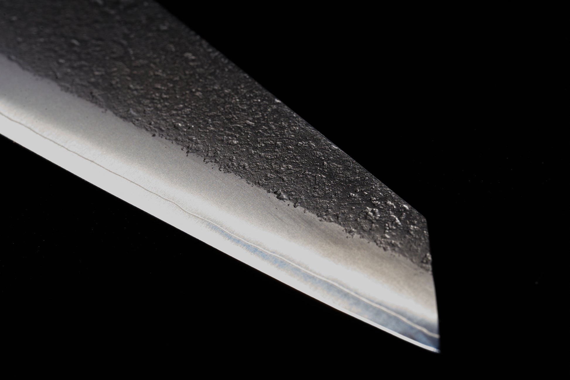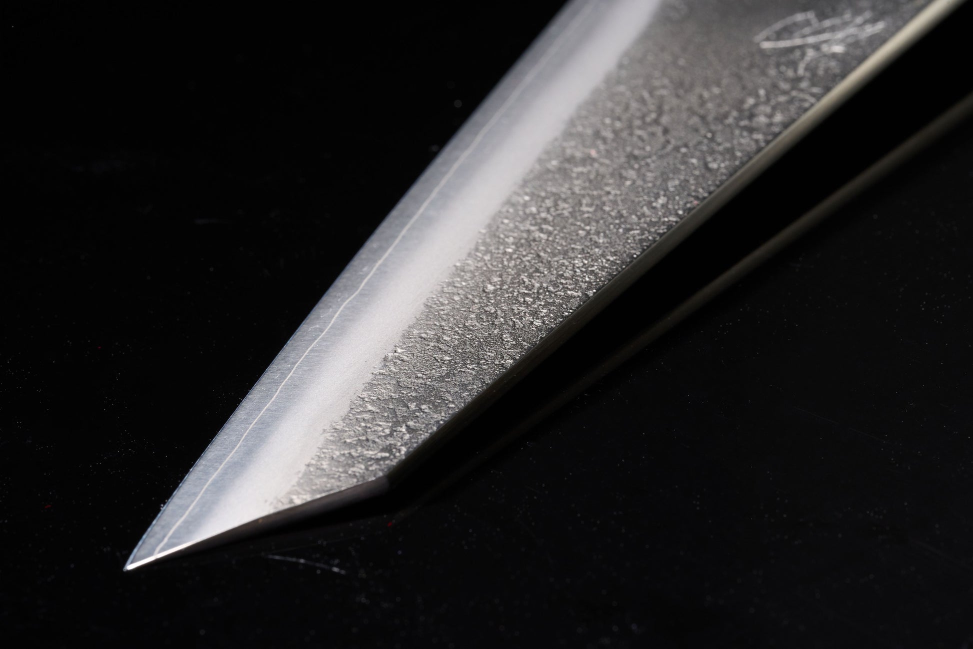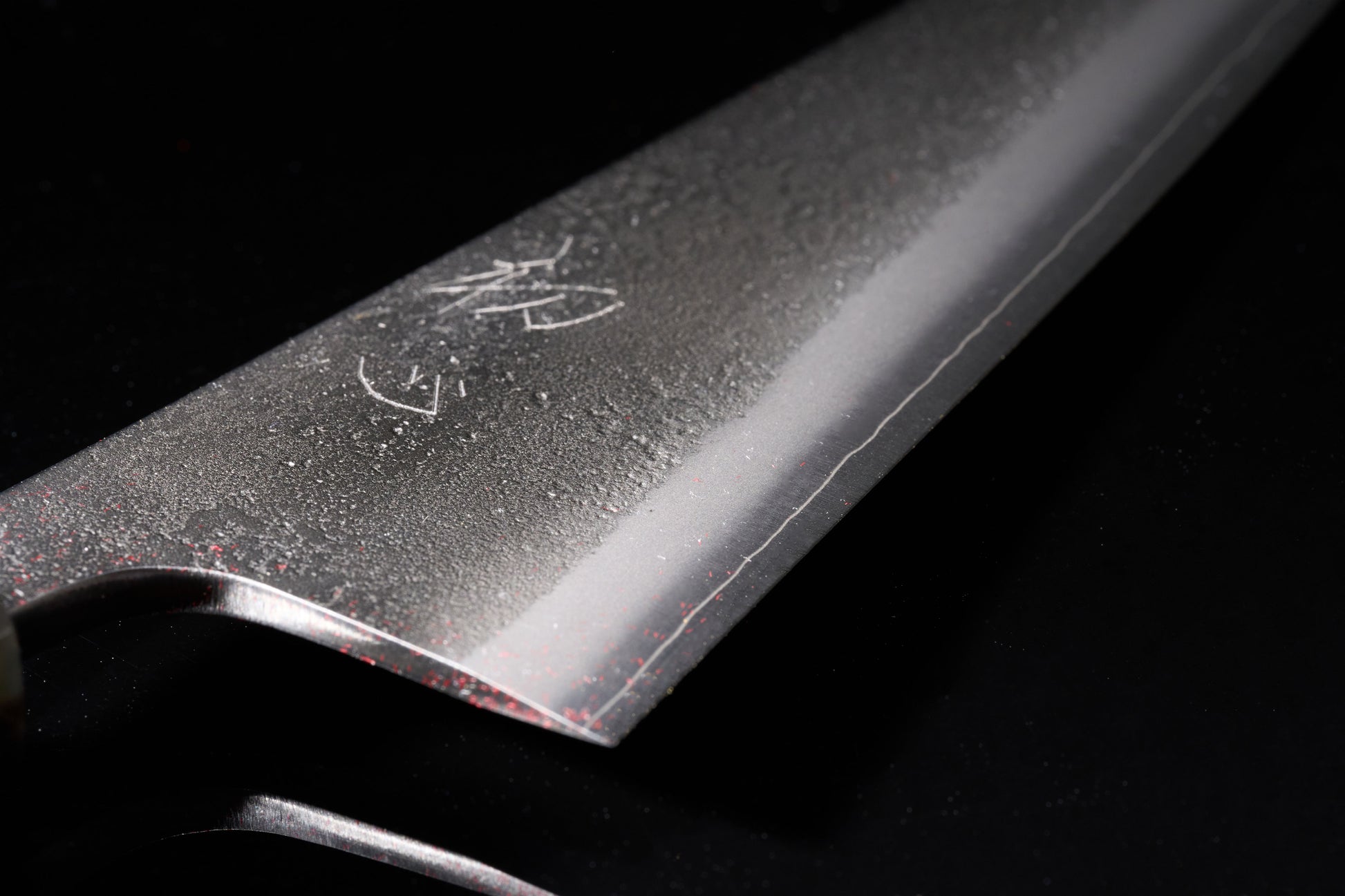 Regarding the daily maintenance of Japanese kitchen knives:1、The forging technique of Japanese kitchen knives has evolved from traditional Japanese swords, giving them superior sharpness and hardness, making them excellent for cutting and slicing tasks. Most food ingredients commonly purchased in Japan, such as fish, chicken, beef, and pork, are often already processed into boneless or meat-only forms. Consequently, the need for chopping and cleaving is rare in most Japanese culinary scenarios. Therefore, Japanese kitchen knives are not designed for heavy chopping, and it is advisable not to attempt to cut or chop frozen foods and bones, as it may lead to blade damage.2、If your kitchen knife is made from carbon steel, it is essential to wash the knife after use and thoroughly dry it to prevent moisture retention. This is especially important as carbon steel blades are prone to rust if not properly maintained. From a hygiene standpoint, it is also recommended to keep stainless steel knives clean. If you plan to store your knife for an extended period without use, we suggest applying a layer of knife oil (olive oil is also suitable) and wrapping the blade with rust-resistant paper (newspaper is acceptable).
