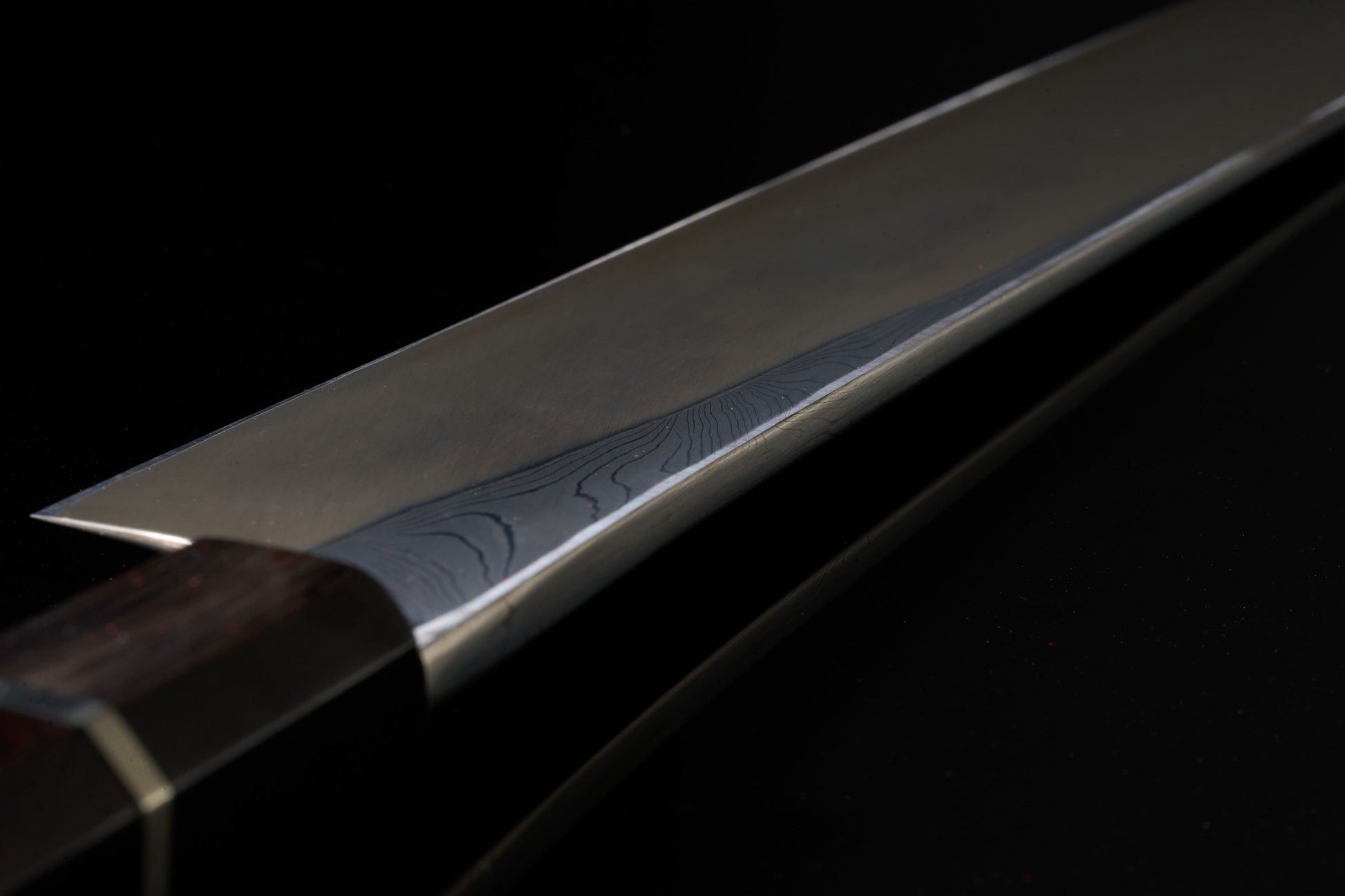 The high-end series of NIGARA hamono combines over 300 years of forging history and family sword-making experience, along with modern advanced forging techniques, to create extremely rare and unique works. The patterned steel on these knives is personally twisted and forged by the principal of NIGARA hamono from two different types of steel materials. Relying on the artisan's exquisite skill and strength, each piece is made unique, showcasing an extremely high level of craftsmanship.