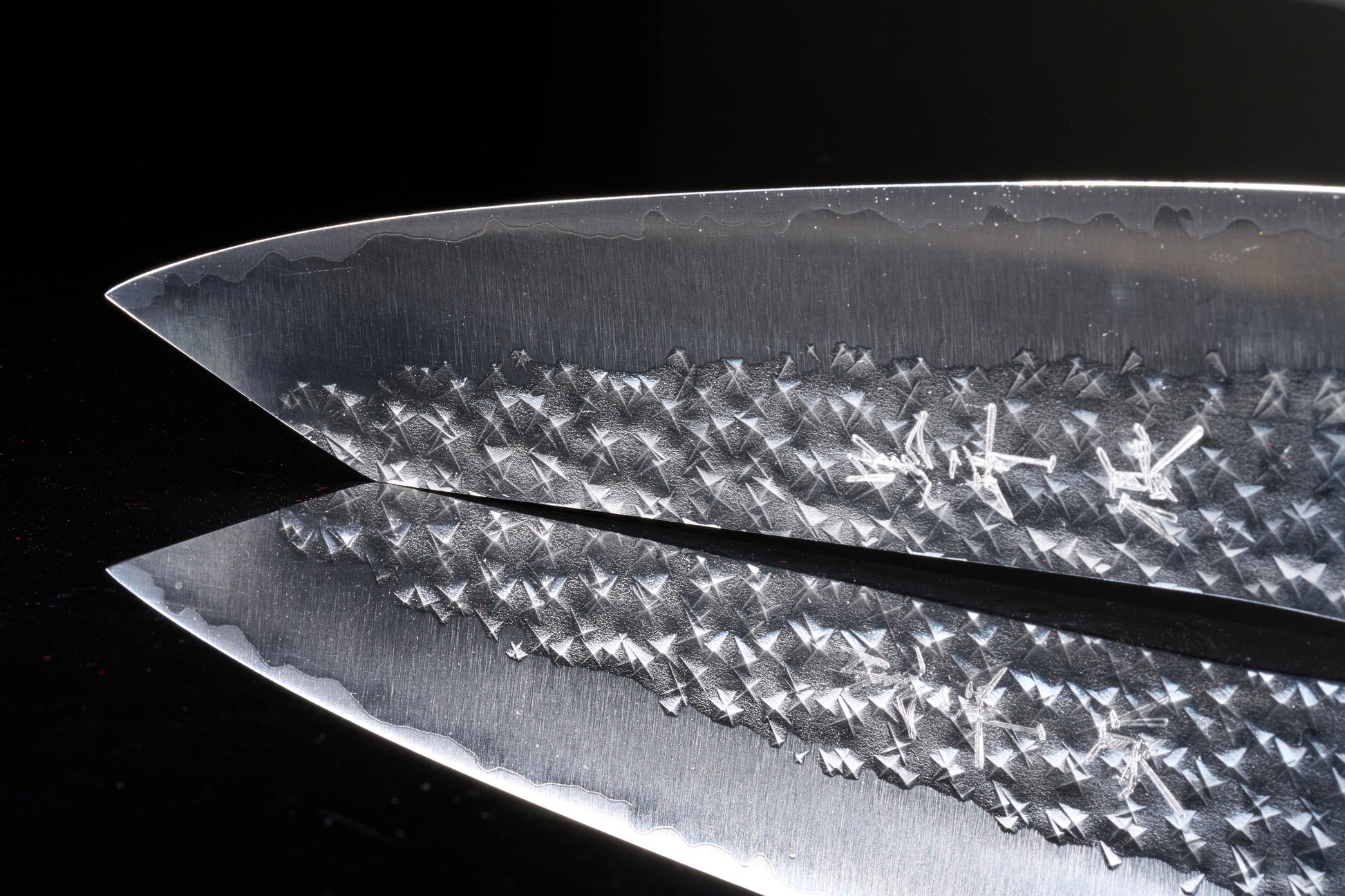 Regarding the daily maintenance of Japanese kitchen knives:1、The forging technique of Japanese kitchen knives has evolved from traditional Japanese swords, giving them superior sharpness and hardness, making them excellent for cutting and slicing tasks. Most food ingredients commonly purchased in Japan, such as fish, chicken, beef, and pork, are often already processed into boneless or meat-only forms. Consequently, the need for chopping and cleaving is rare in most Japanese culinary scenarios. Therefore, Japanese kitchen knives are not designed for heavy chopping, and it is advisable not to attempt to cut or chop frozen foods and bones, as it may lead to blade damage.2、If your kitchen knife is made from carbon steel, it is essential to wash the knife after use and thoroughly dry it to prevent moisture retention. This is especially important as carbon steel blades are prone to rust if not properly maintained. From a hygiene standpoint, it is also recommended to keep stainless steel knives clean. If you plan to store your knife for an extended period without use, we suggest applying a layer of knife oil (olive oil is also suitable) and wrapping the blade with rust-resistant paper (newspaper is acceptable).